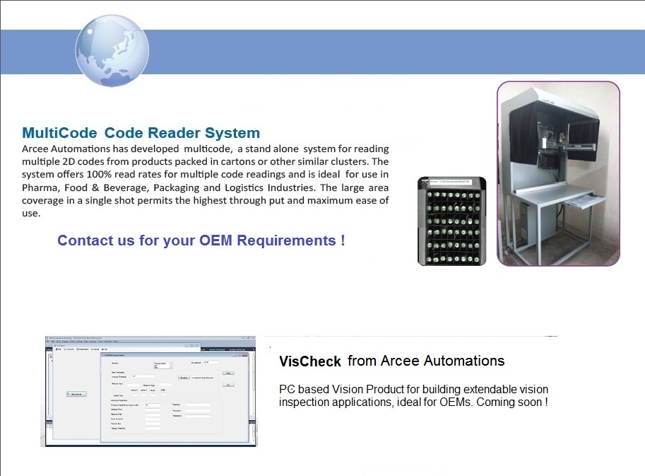 Arcee Automations is an R&D based company in the field of industrial automation, delivering cutting edge engineering solutions to a diverse range of industries for over two decades. We specialize in combining our experise in the areas of Machine Vision, Software, Robotics and Electronics to deliver unique solutions for manufacturing automation, in sectors such as Automotive, Pharma, Energy, Switchgear, Electronics and Consumer Goods.